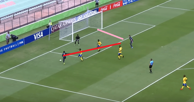 2- In “kick and rush” situations he has the possibility of taking the ball with an open field so he can run and assist to one of the two strikers