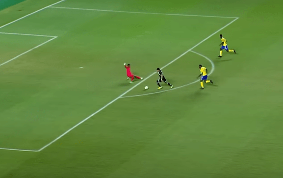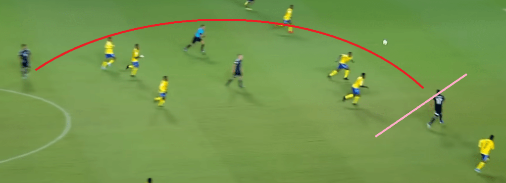 And then he mastered the ball and crossed to Efraín Alvarez who was completely free between Solomon Islands’ defensive lines. Look at the huge space between the defenders and midfielders: