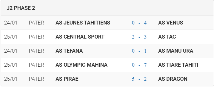 AS Venus poursuit son chemin vers la victoire du titre en douceur. La victoire en reprise contre Pirae leur a également permis de garder l’équilibre des affrontements directs de leur côté en cas d’égalité de points face à leurs rivaux habituels qui sont actuellement à 6 points derrière les leaders mais avec 2 matchs encore à récupérer. Reste l’AS Tiare Tahiti qui est sournois à 1 point du sommet et qui procède avec un calme égal. Ce qui est certain, c’est que le championnat de cette année se déroulera jusqu’au bout.